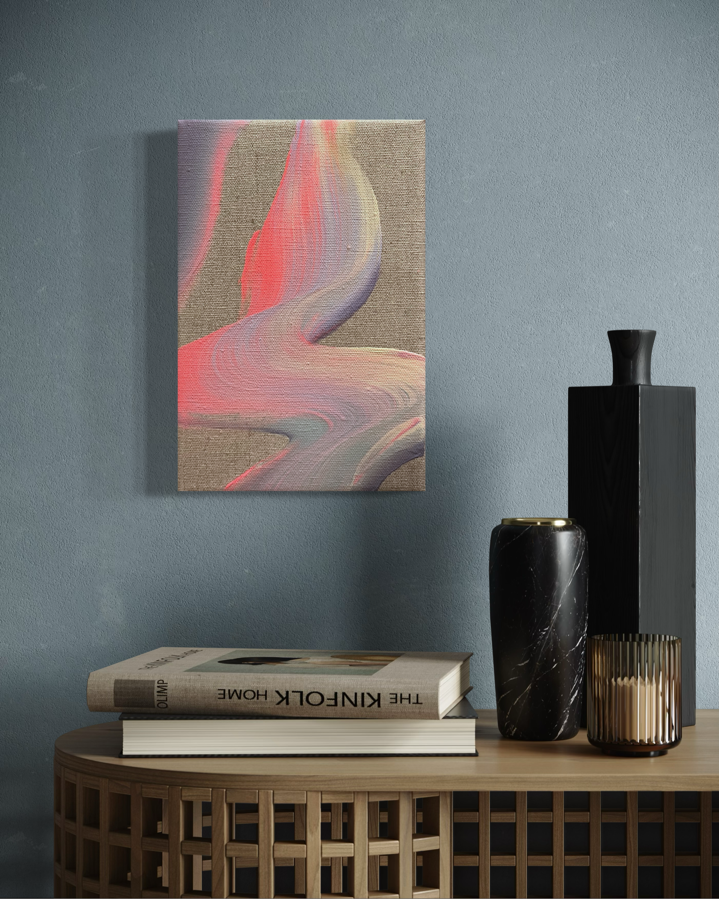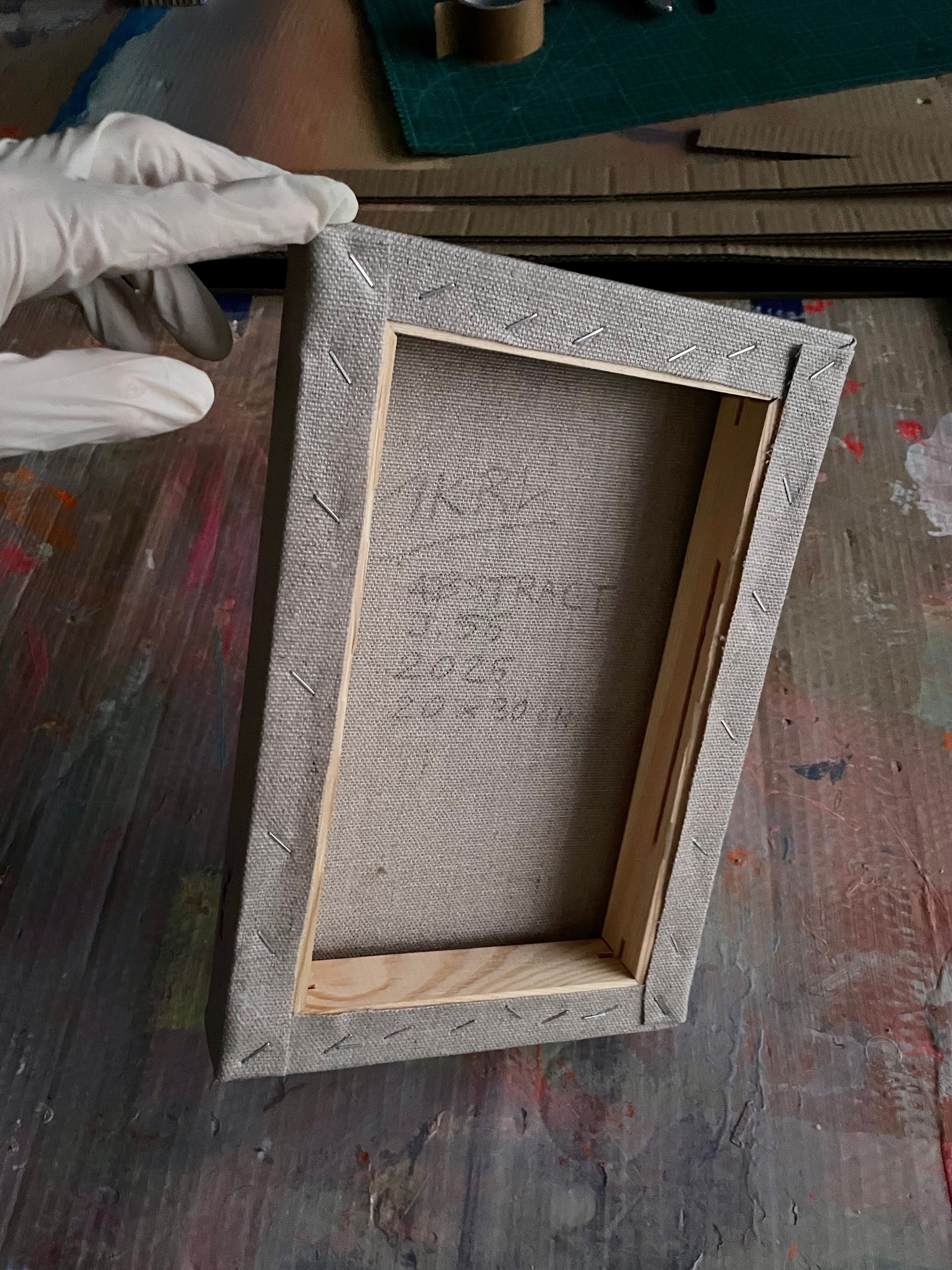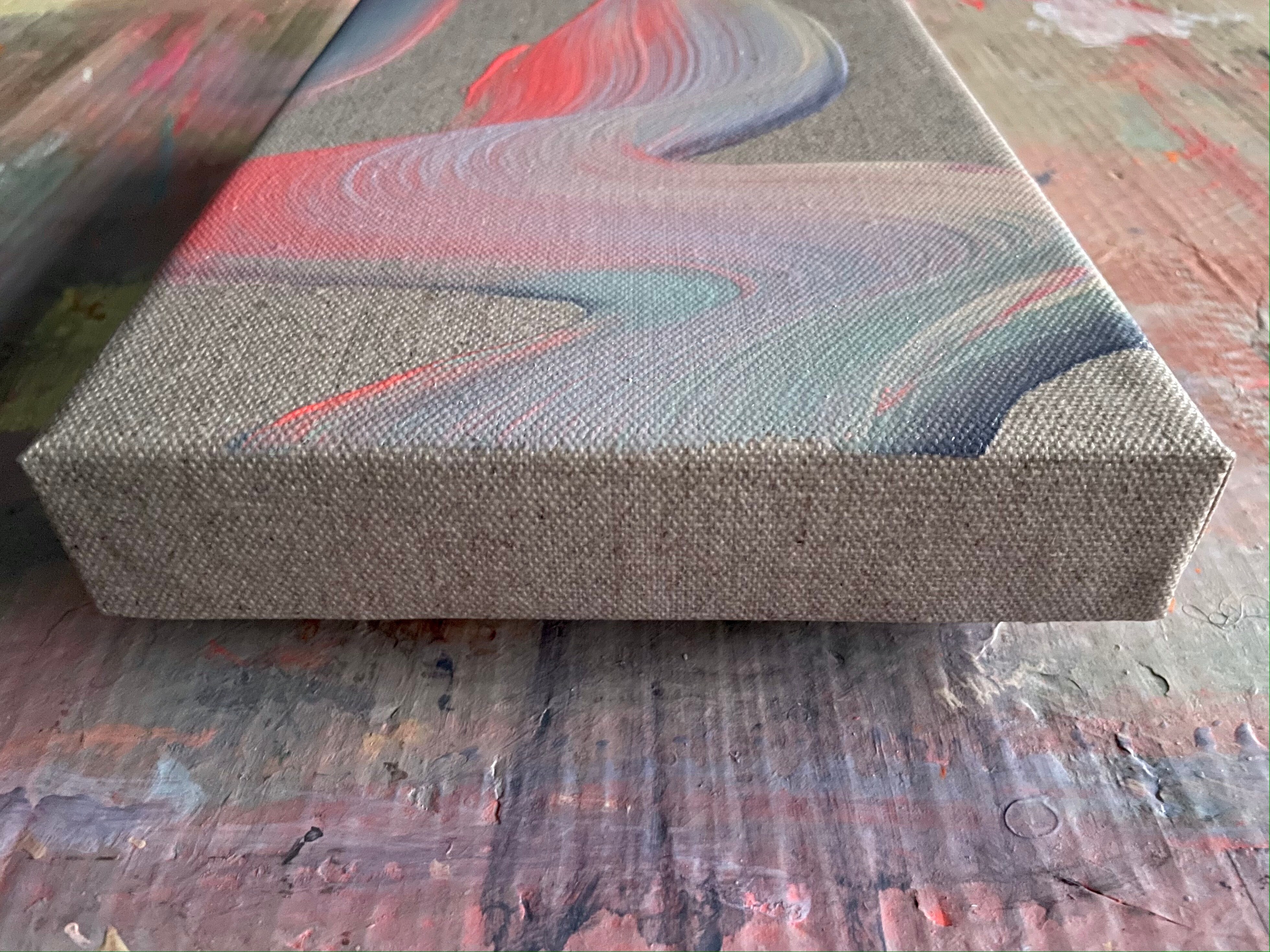 Materials: Acrylic paint, medium for acrylics. Linen canvas stretched on a wooden stretcher frame.